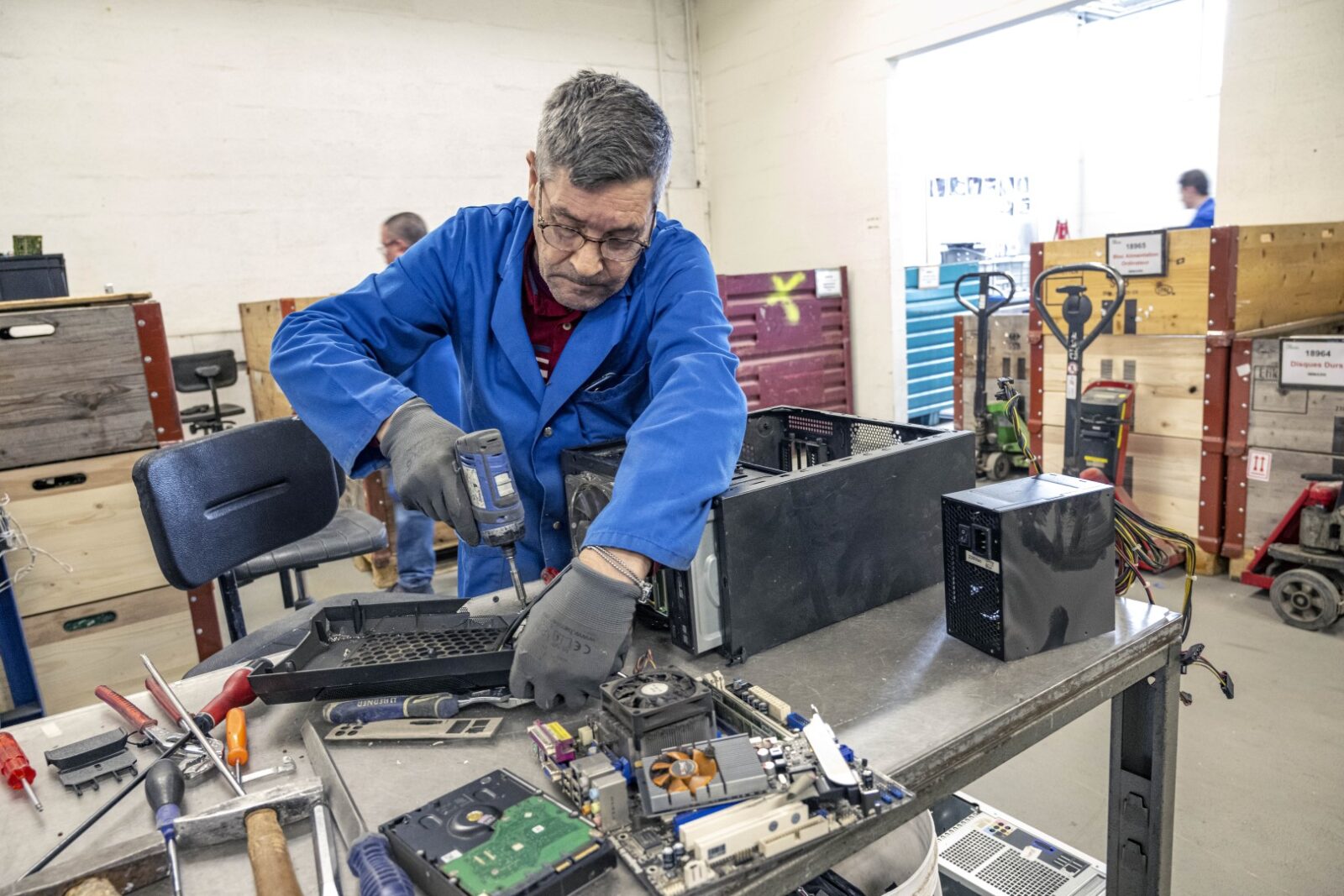 Spécialisée dans le recyclage d’équipements électroniques, la société Job Eco s’occupe d’éliminer les installations que nous remplaçons chez nos clients. Avec un double objectif écologique et social.