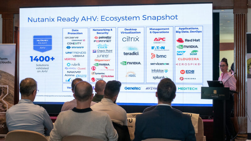 La matinée s’est poursuivie avec un retour d’expérience concret sur une migration vers Nutanix, présenté conjointement par les équipes UDITIS et Nutanix. Une occasion précieuse de découvrir des scénarios réels, des bonnes pratiques et des retours terrain directement applicables dans les projets d’infrastructure.